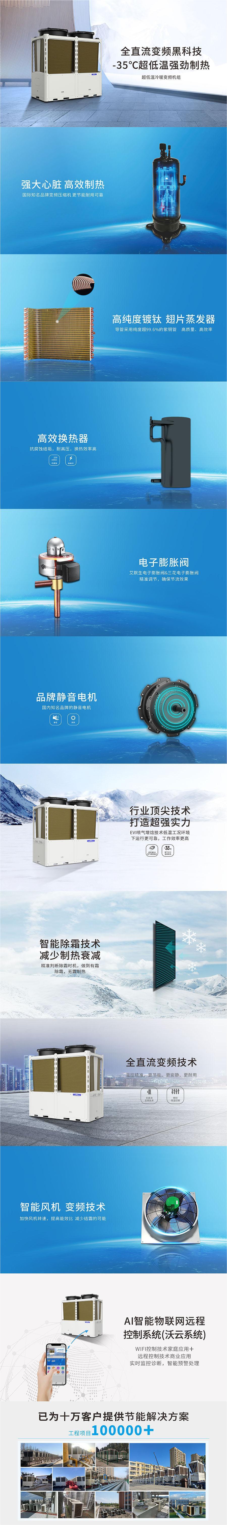 大型建筑空气能采暖热泵能源解决方案,全直流变频空气能采暖热泵:一级能效,原装进口全直流变频压缩机,主机&末端联控解决方案。