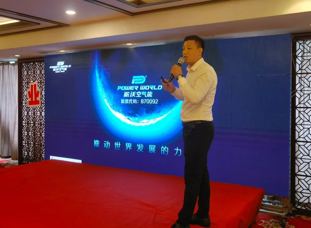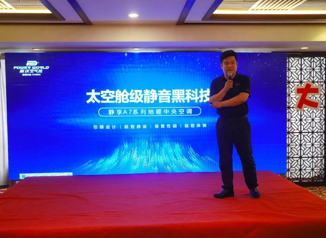 在贝博空气能A7新品发布环节,贝博空气能重磅新品——静享A7系列·地暖中央空调震撼亮相。在新品发布会现场,首先是由青岛大区总监刘过刘总上台,针对关于山东市场机会与贝博合作的优势作出了精彩的演讲。