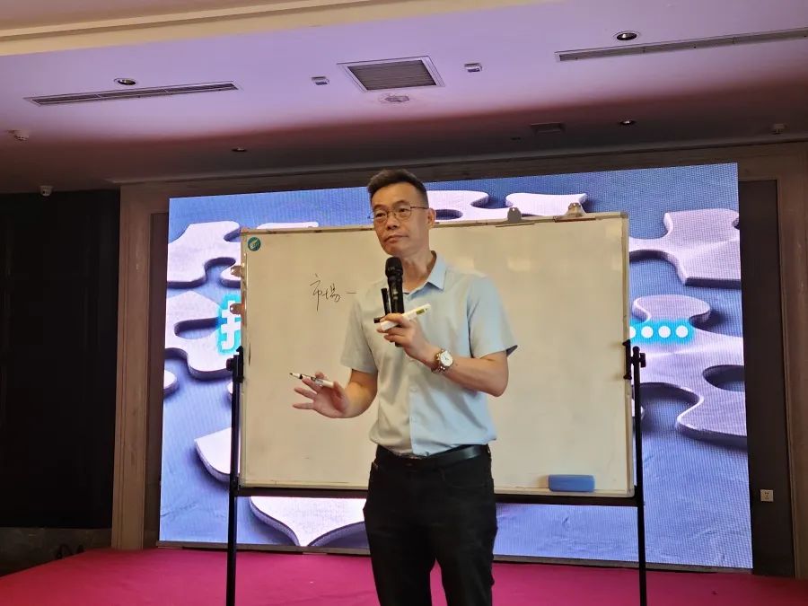 会议开始之际,我们特别邀请了金牌讲师盛老师上台为大家授课,盛老师是中国百位品牌策划代表人物之一、专注消费品领导力与管理、销售运营、渠道运营管理、新零售专家,其精彩授课让我们受益匪浅,为我们解答了如何实现新零售转型在市场竞争中转变思维、拓宽思路,增强营收能力,打造更强的市场竞争力。