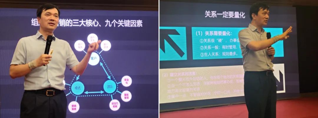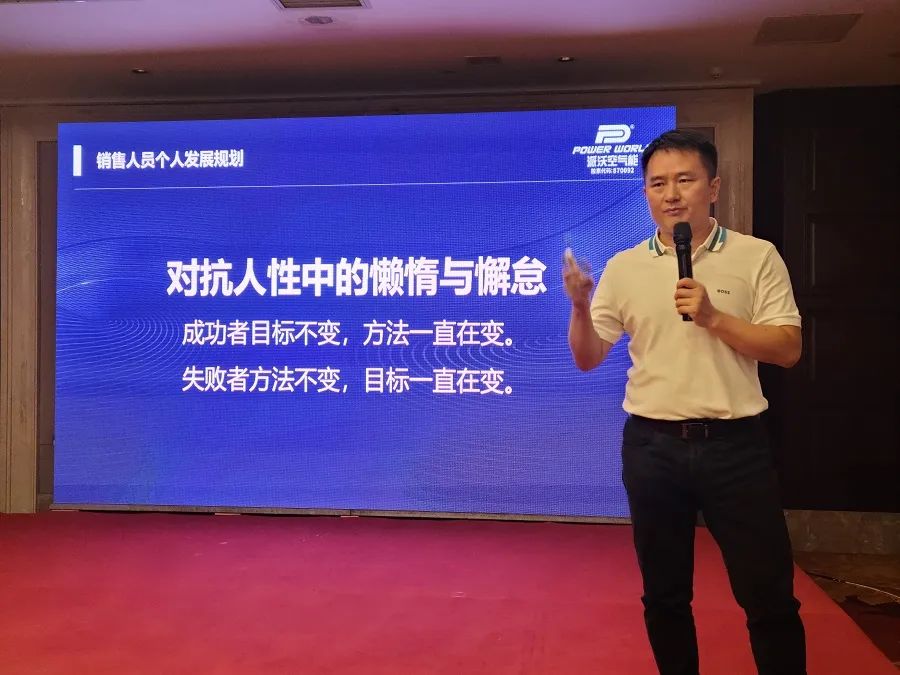 随后便是由周博士为大家分享空气能工程项目销售技巧,贝博空气能作为中国空气能行业领军品牌,在不同的工程领域深耕不辍,树立了各种精品工程案例,组成营销的三大核心和九个关键因素,客户、团队、模式密不可分。