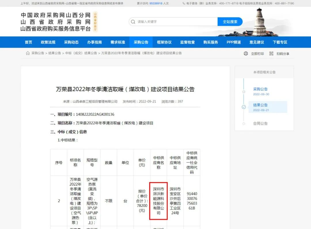 2022年截至现在,贝博空气能先后中标了山西、吉林、辽宁等多个地区的大型“煤改电”项目,中标数量在行业中遥遥领先,彰显了中国空气能行业领军品牌的实力!
