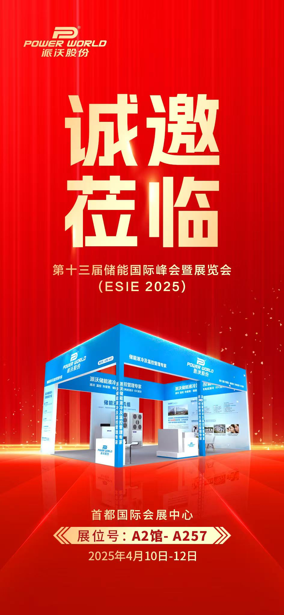 第十三届储能国际峰会暨展览会(ESIE 2025)将于4月10-12号在北京首都国际会展中心盛大举行。贝博股份作为储能液冷领域的重要企业,将携其最新的产品和技术亮相本次展会。贝博股份诚挚邀请您莅临A2馆-A257展位现场交流,届时将展示一系列创新的储能液冷解决,与您共探全球新能源发展趋势。