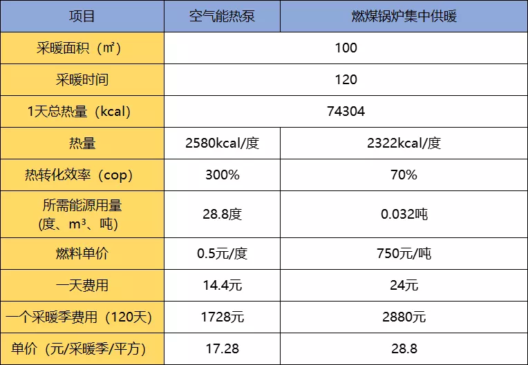 首先我们以供暖面积100㎡来算一笔煤价还没疯涨之外的经济账: