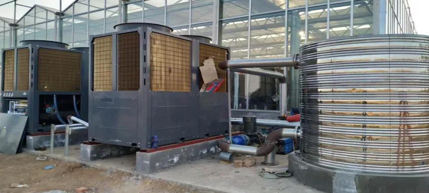 传统的大棚蔬菜种植供暖系统主要采用燃烧煤、秸秆等来进行供暖。这种方式虽然也能够满足大棚蔬菜生长的温度,但能耗高、污染大、而且有火星窜出发生火灾的危险,温度也不能持续保持恒温效果,是绿色农业的反面教材。在目前市场上流行的诸多种新型采暖设备中,以空气中的热量为能源的空气能热泵因为其安全、环保、节能等优点,受到了种植户的认可和喜爱,成为时下大棚采暖市场的主力军。
