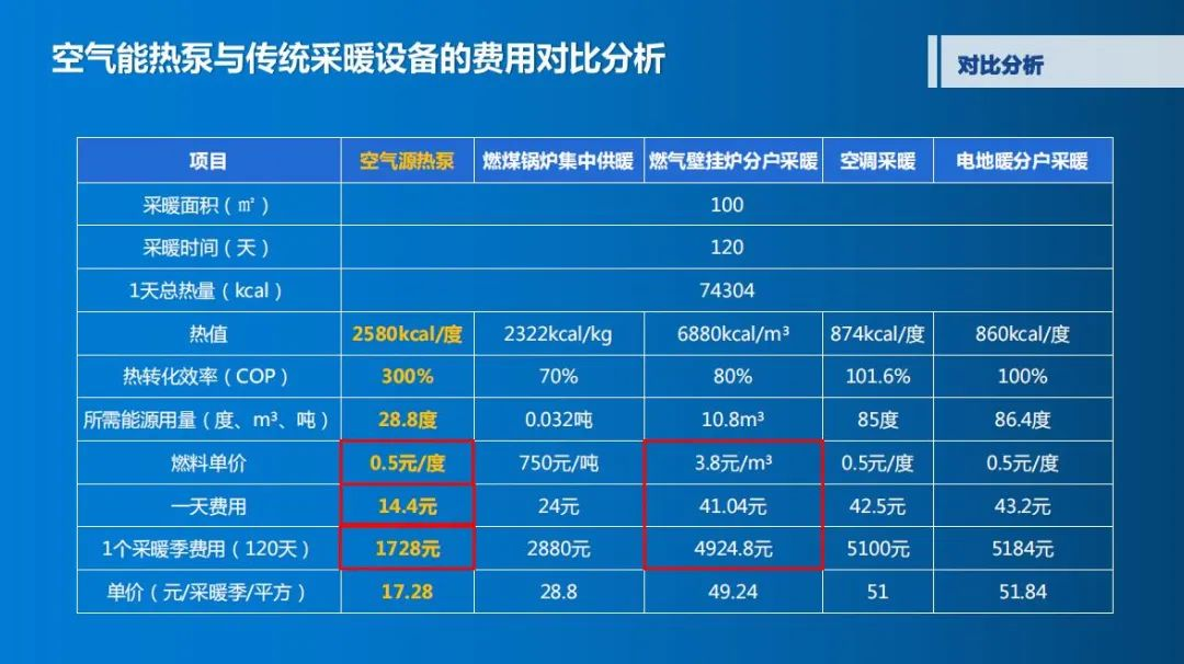 贝博静享A7系列空气能作为新能源采暖设备,综合能效系数IPLV(H)高达3.2,凭借其安全、节能、环保的特点得到了消费者的一致认可。特别是在运行成本费用上,贝博静享系列空气能运行成本比燃气壁挂炉少65%!