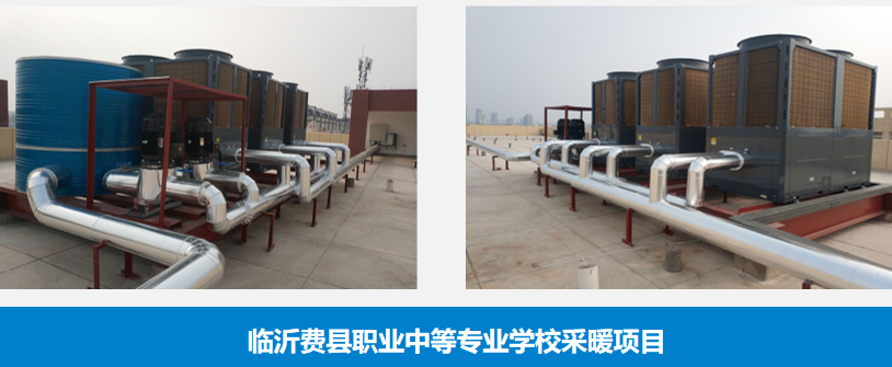 学校位于山东省临沂市费县,共计面积1 万平米,要求冷暖两用,配置贝博超低温冷暖热泵 60 匹 6 台,末端配置风机盘管。