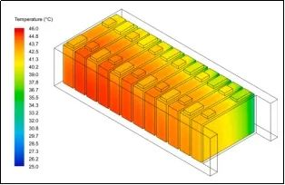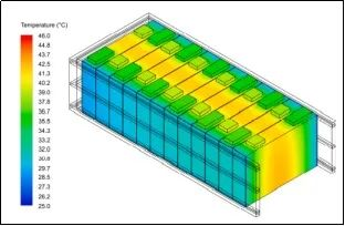 在相同的入口温度和极限风速及流速下,液冷电池包的温度在30-40摄氏度,而风冷电池包的温度要在37-45摄氏度。液冷的温度均有性更好。