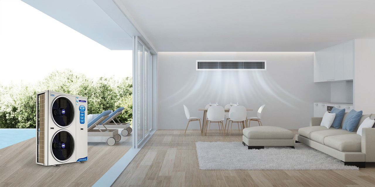 在夏季时通过制造低温冷冻水输送到风机盘管进行制冷,在冬季时通过制造高温热水输送到地暖、暖气片进行制热,最终实现一机两用的功能。