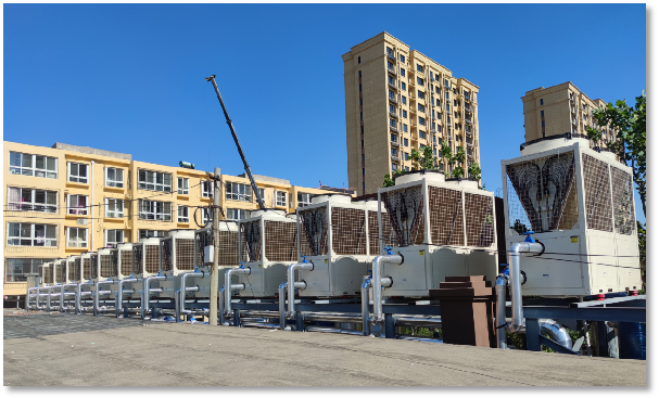 鉴于此,得益于国家“双碳”政策的推动以及空气能供暖设备自身的优势,这些设备在北方地区得到了更广泛的应用。在医院、酒店、学校、住宅等领域的节能改造项目中,空气能设备的使用日益增多。例如,河北唐山丰南区小区和稻地镇小区,积极响应国家推广清洁能源采暖的号召,选用了贝博空气能热泵作为其采暖和制冷设备,以满足居民的生活需求。