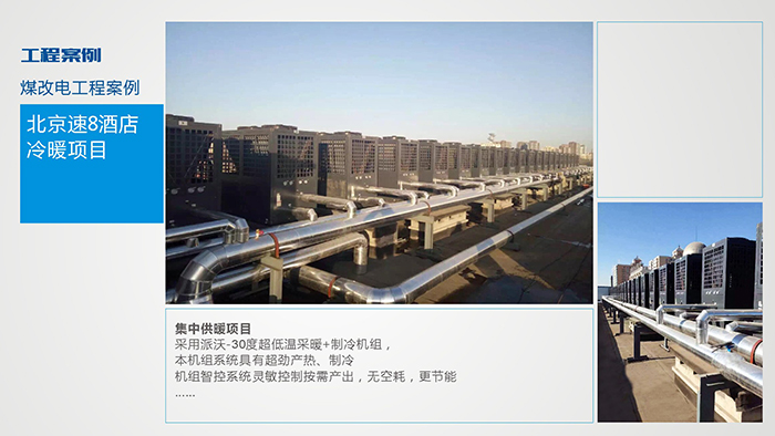 宾馆酒店热水工程要求,改变经济型酒店传统锅炉加热设备、电加热设备、太阳能加热设备,运行费用昂贵的现状。对能源利用率要求高,环保要求高且需要尽量减少运行费用。要安全可靠、水温稳定,波动小,控制简单。